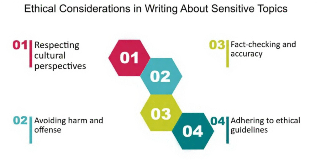 There is a great deal of responsibility when writing about delicate subjects. The words we use have the potential to empower, heal, injure, mislead, educate, or mute. When contentious topics are handled poorly, they become propaganda tools that strengthen divisions and reinforce prejudices. In order to promote meaningful conversations, a responsible approach places a high priority on creating ethical material while guaranteeing accuracy, cultural sensitivity, and courteous communication.